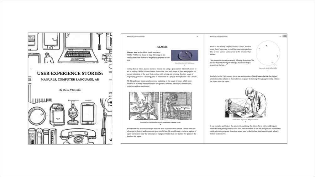 User Experience stories: Manuals, Computer language, AR